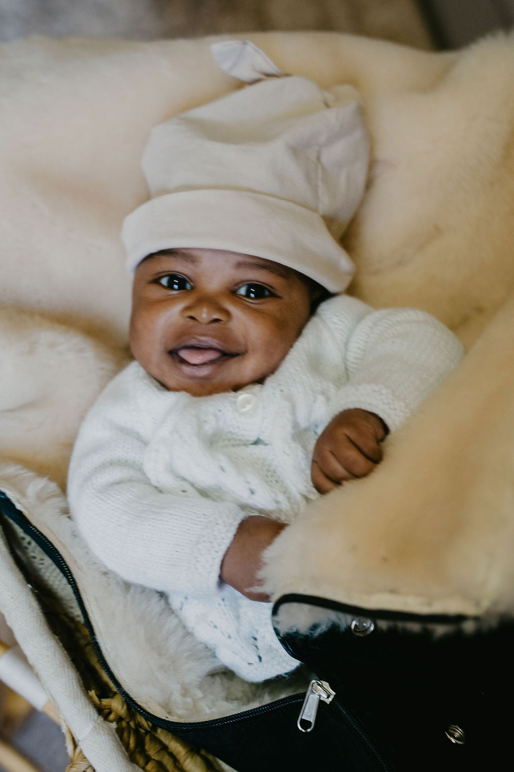 A South African first, combining beautiful Natural textiles: Genuine Leather, Medical-grade Sheepskin and lush Woven Wool in a 5-in-1 design for your baby/toddler.